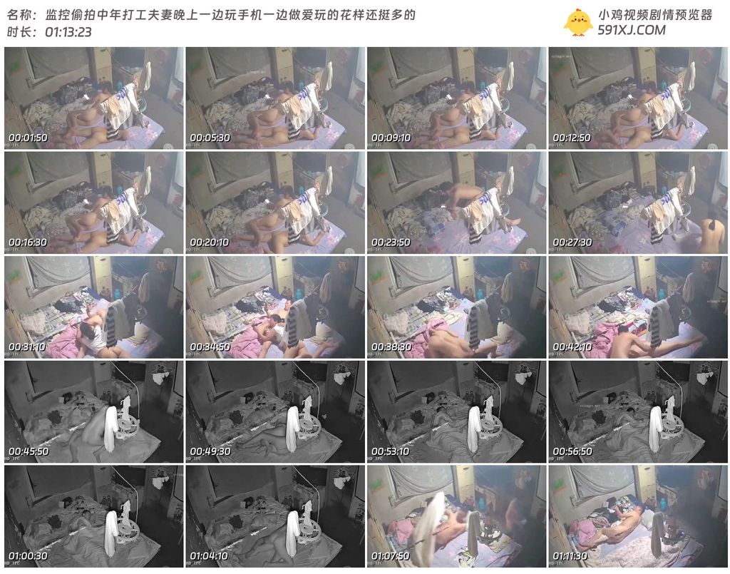 监控偷拍中年打工夫妻晚上一边玩手机一边做爱玩的花样还挺多的