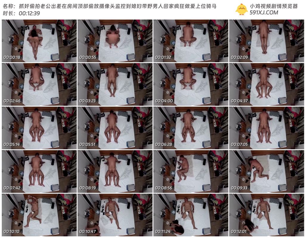 抓奸偷拍老公出差在房间顶部偷放摄像头监控到媳妇带野男人回家疯狂做爱上位骑马