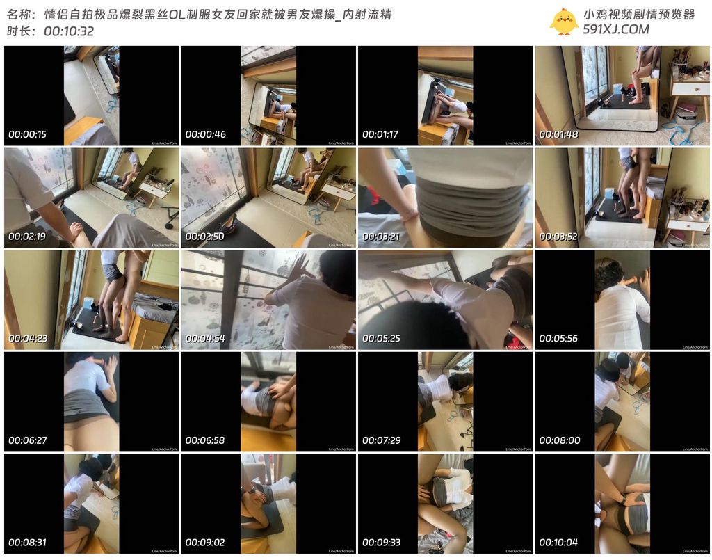 情侣自拍极品爆裂黑丝OL制服女友回家就被男友爆操_内射流精