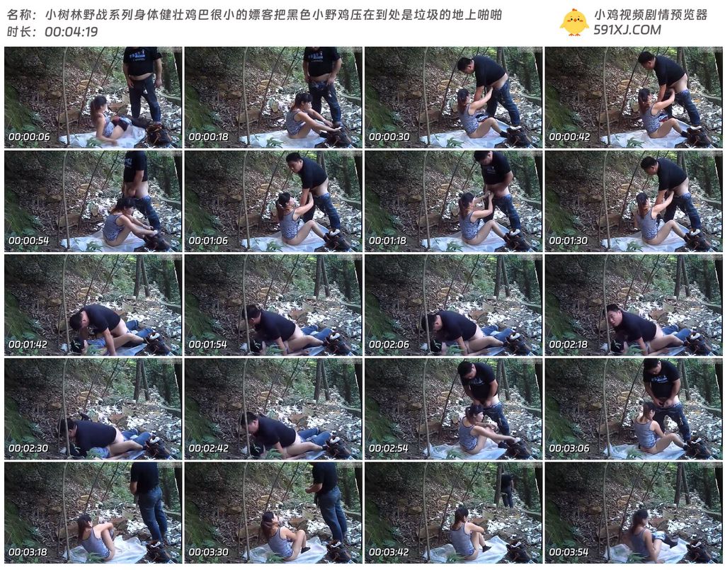 小树林野战系列身体健壮鸡巴很小的嫖客把黑色小野鸡压在到处是垃圾的地上啪啪