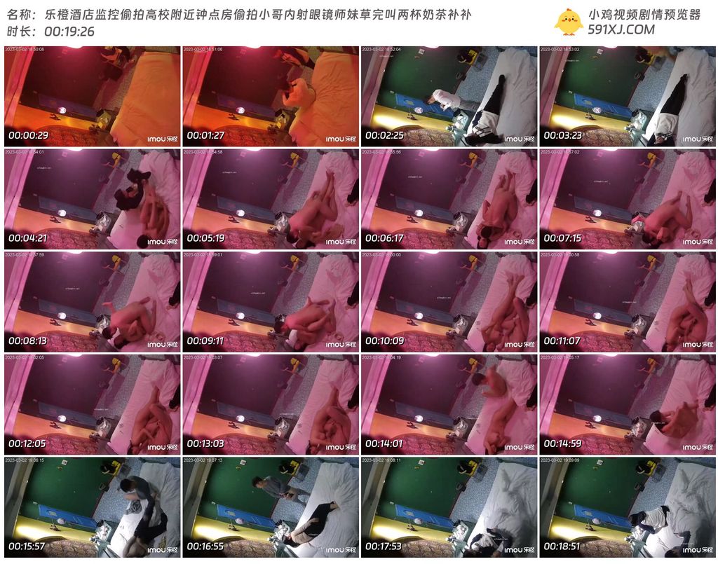乐橙酒店监控偷拍高校附近钟点房偷拍小哥内射眼镜师妹草完叫两杯奶茶补补