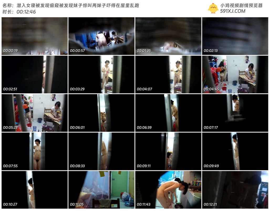 潜入女寝被发现偷窥被发现妹子惊叫两妹子吓得在屋里乱跑