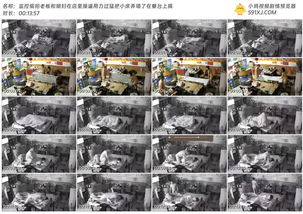 监控偷拍老板和媳妇在店里操逼用力过猛把小床弄塌了在餐台上搞