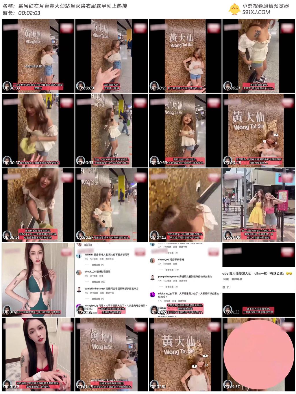 某网红在月台黄大仙站当众换衣服露半乳上热搜