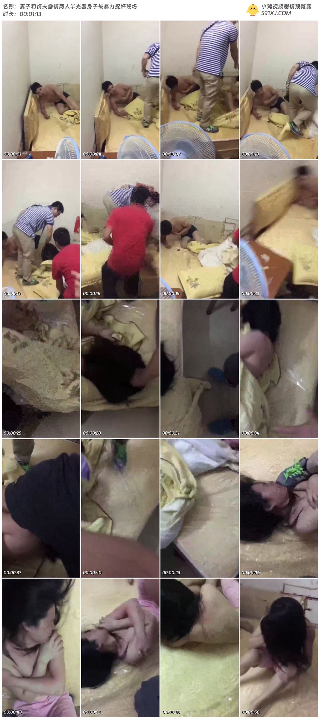 妻子和情夫偷情两人半光着身子被暴力捉奸现场