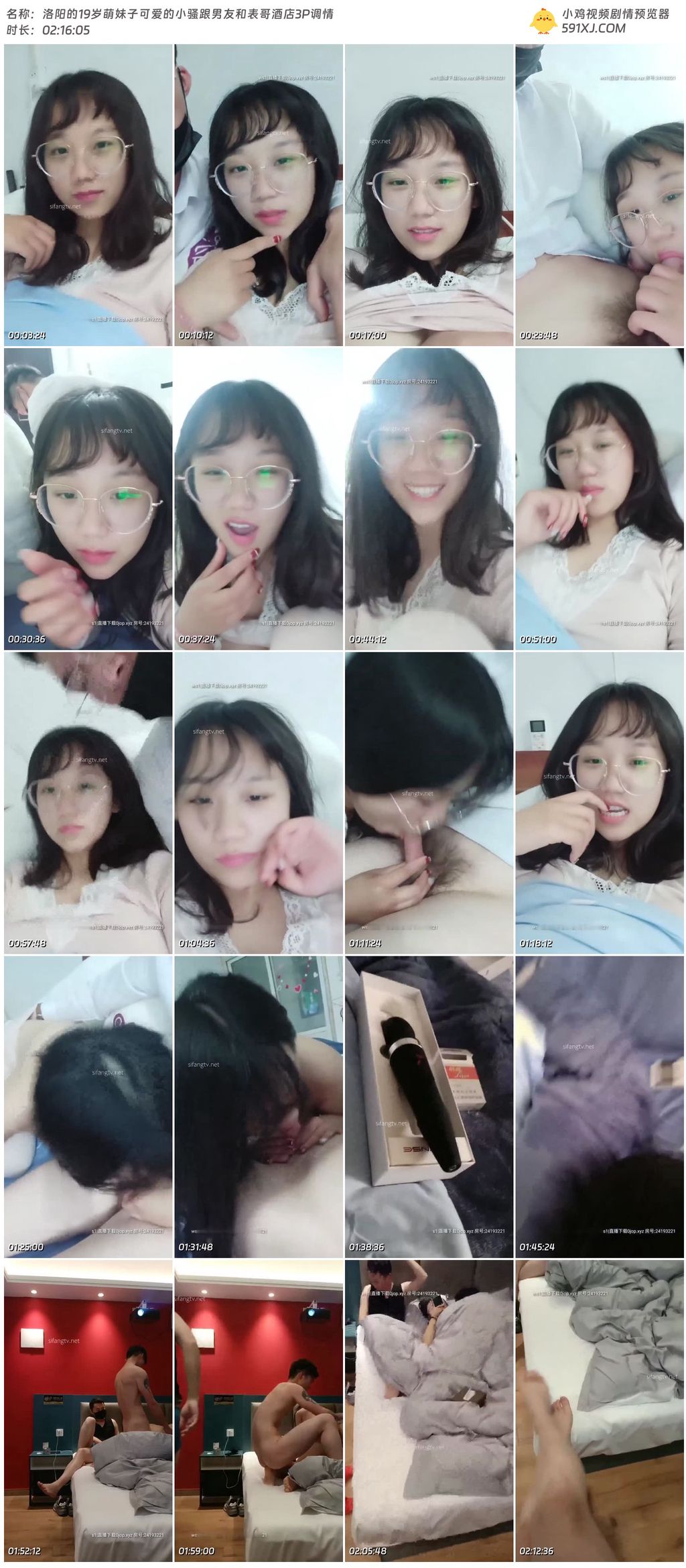 洛阳的19岁萌妹子可爱的小骚跟男友和表哥酒店3P调情