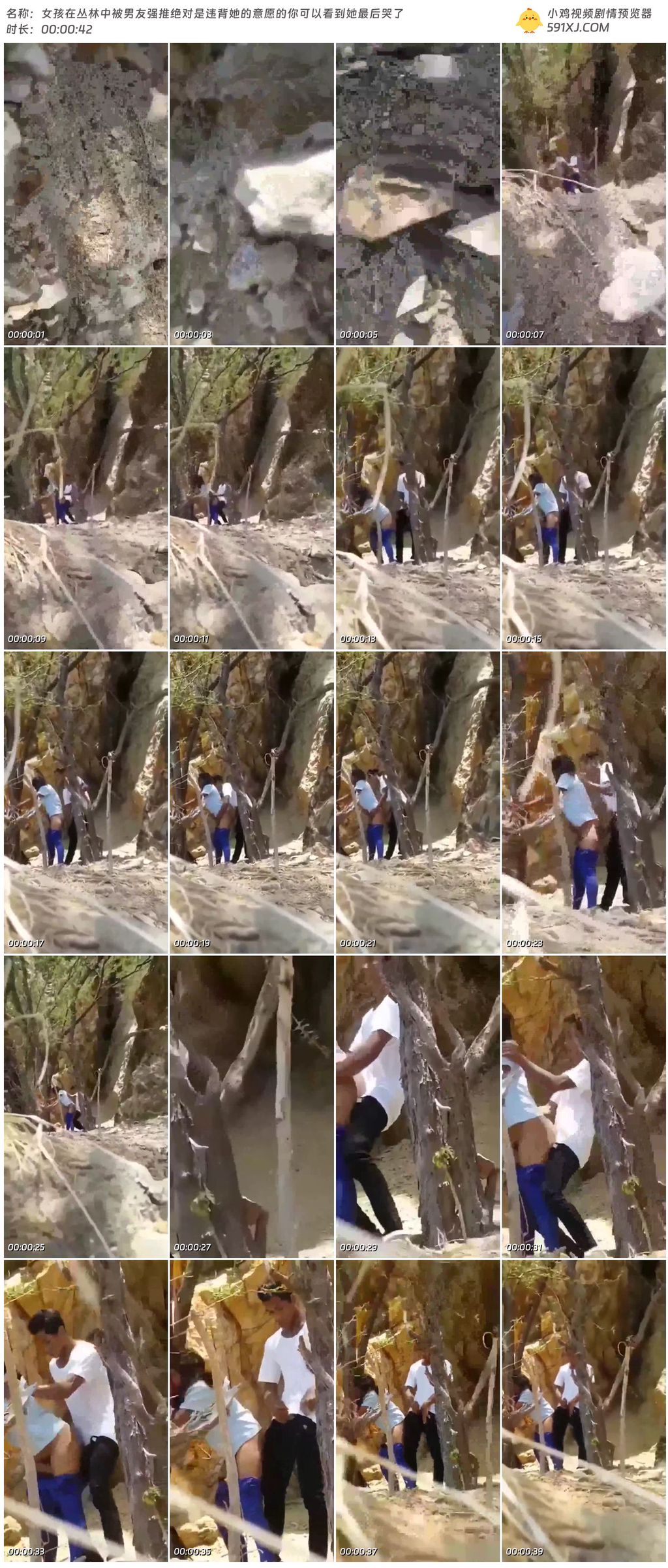 女孩在丛林中被男友强推绝对是违背她的意愿的你可以看到她最后哭了