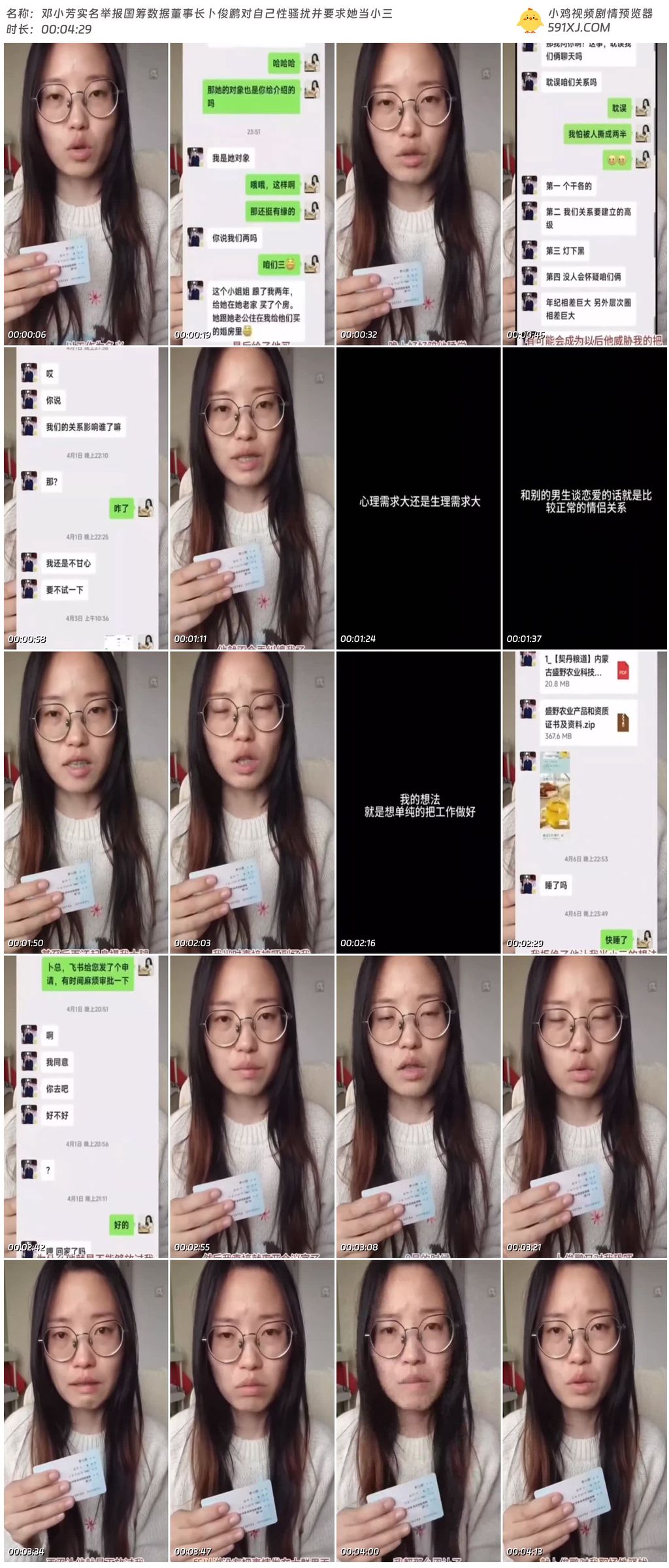邓小芳实名举报国筹数据董事长卜俊鹏对自己性骚扰并要求她当小三