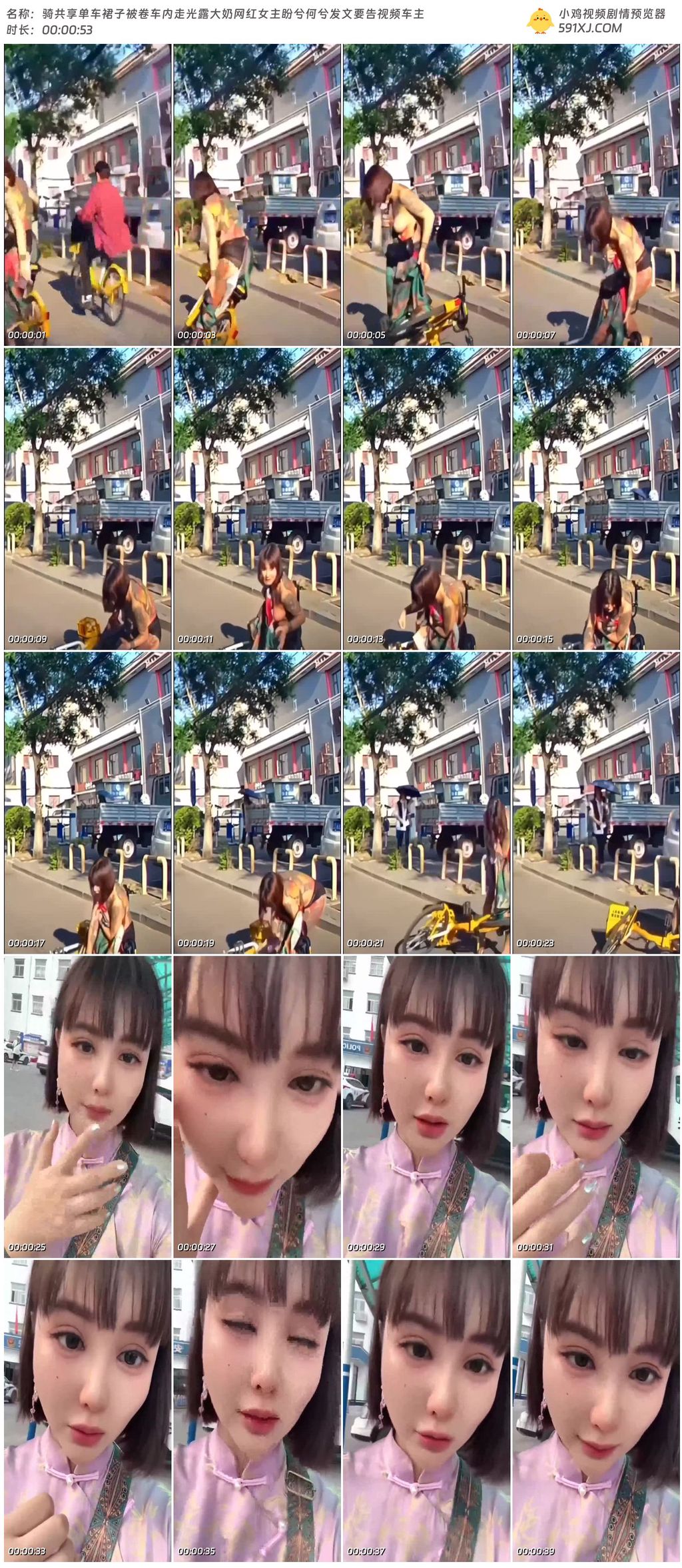 骑共享单车裙子被卷车内走光露大奶网红女主盼兮何兮发文要告视频车主