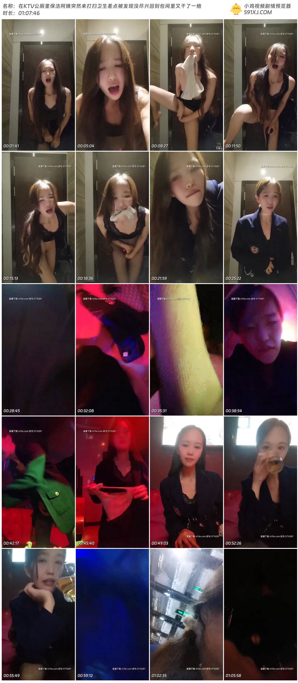 在KTV公厕里保洁阿姨突然来打扫卫生差点被发现没尽兴回到包间里又干了一炮