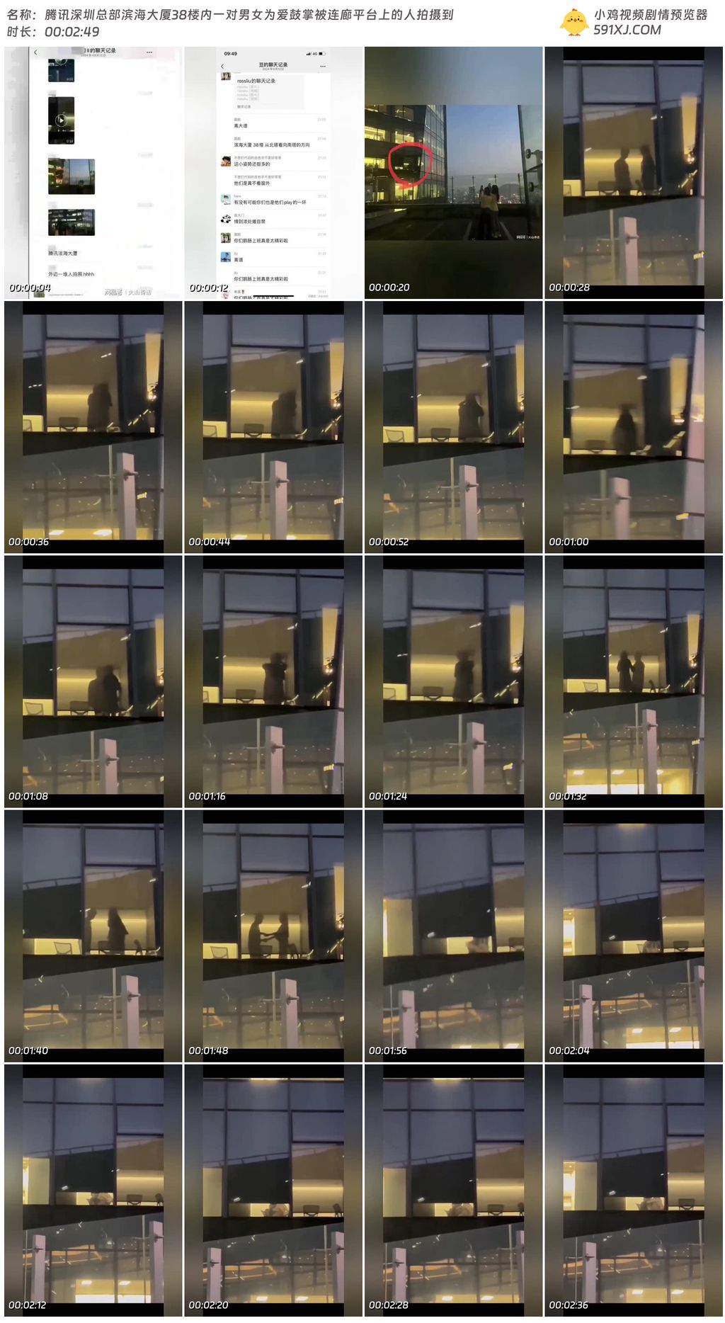 腾讯深圳总部滨海大厦38楼内一对男女为爱鼓掌被连廊平台上的人拍摄到