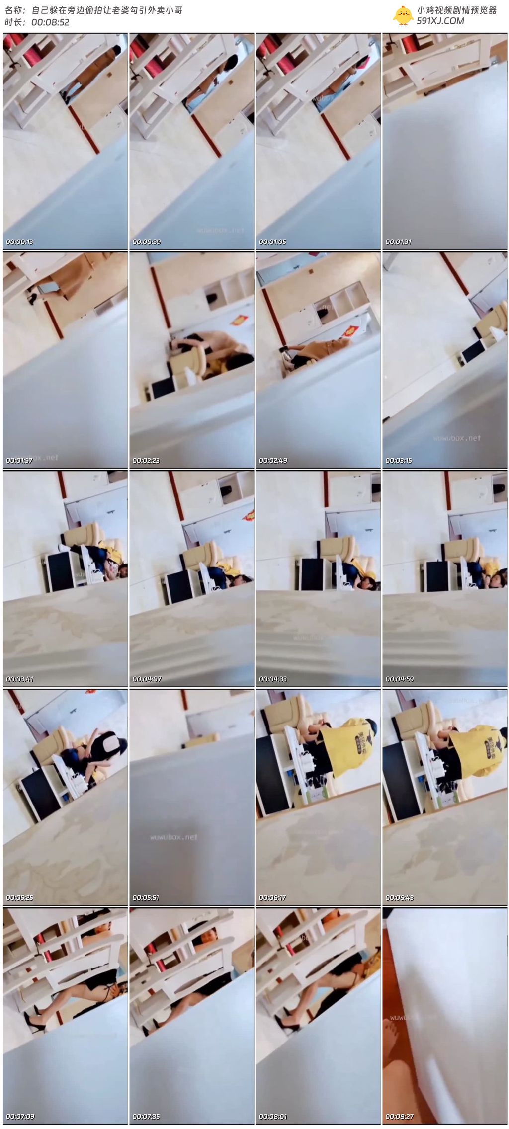 自己躲在旁边偷拍让老婆勾引外卖小哥