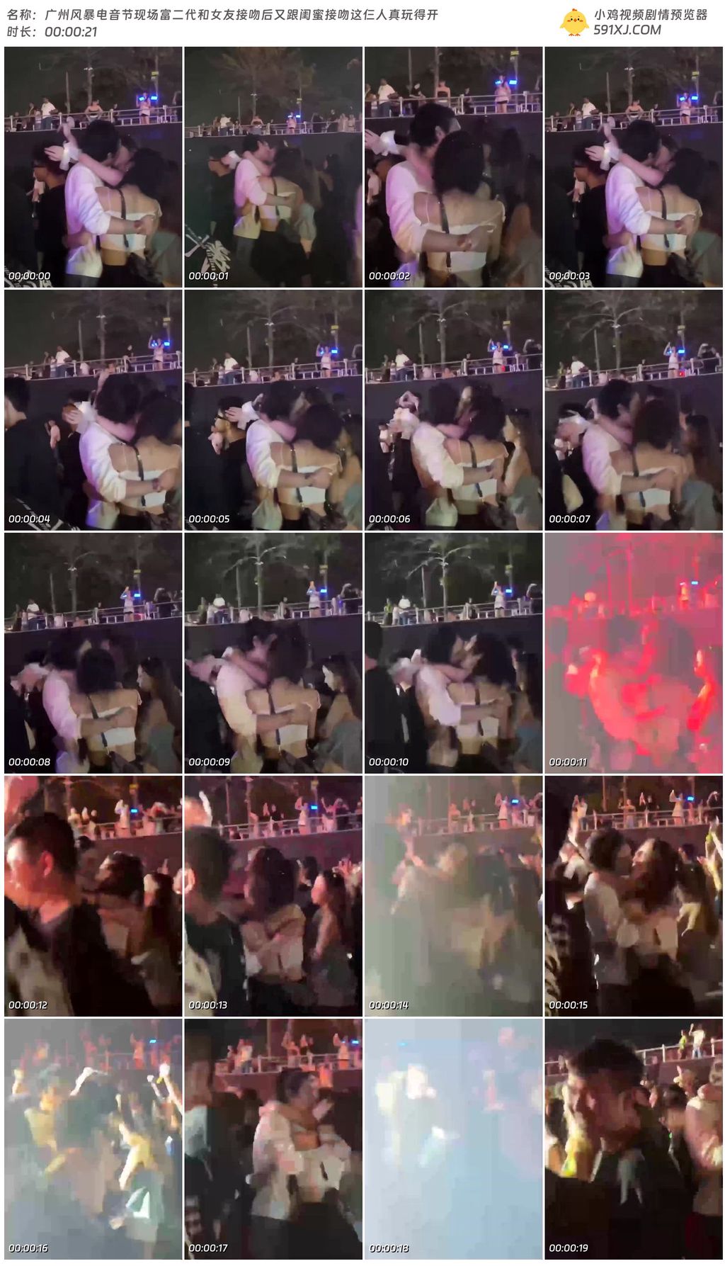 广州风暴电音节现场富二代和女友接吻后又跟闺蜜接吻这仨人真玩得开