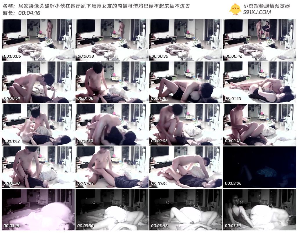 居家摄像头破解小伙在客厅趴下漂亮女友的内裤可惜鸡巴硬不起来插不进去